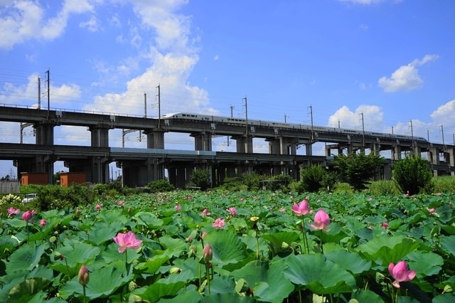 Der Haraichi-Sumpf liegt an der Grenze zwischen der Stadt Ageo in der Präfektur Saitama und der Stadt Ina im Bezirk Kitaadachi und ist berühmt für seine Lotusblumen. Die wunderschöne Landschaft, die hier zu sehen ist, ist das Ergebnis der Kultivierung von Lotussamen, die aus der Stadt Gyoda in der Präfektur Saitama stammen. Die beste Zeit, um die Lotusblumen zu sehen, ist von Mitte Juli bis Anfang August. Planen Sie Ihren Besuch also unbedingt entsprechend!