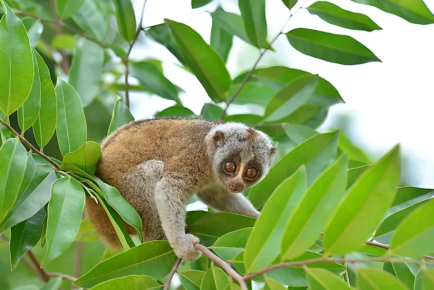 Der wenig bekannte Plumploris ist ein entzückender Primat mit riesigen Augen, die sicherlich nicht den Eindruck einer Kreatur erwecken, vor der sich Menschen in Acht nehmen sollten. Der Plumploris (Gattung Nycticebus) ist ein kleiner Primat mit einer Länge von etwa 25 bis 38 cm und einem Gewicht von etwa 0,5 bis 1 kg. Es hat große, nach vorne gerichtete Augen, einen runden Kopf und ein weiches Fell, was ihm ein unwiderstehlich süßes Aussehen verleiht, das seinen giftigen Biss Lügen straft. Doch was ihnen an Größe, Kraft und scharfen Zähnen fehlt, machen Plumploris durch ihre Giftigkeit mehr als wett. Das ist richtig: Dieser Primat sondert ein Gift ab, das einige ernsthaft unangenehme und sogar tödliche Nebenwirkungen haben kann, wenn man es zufällig provoziert.