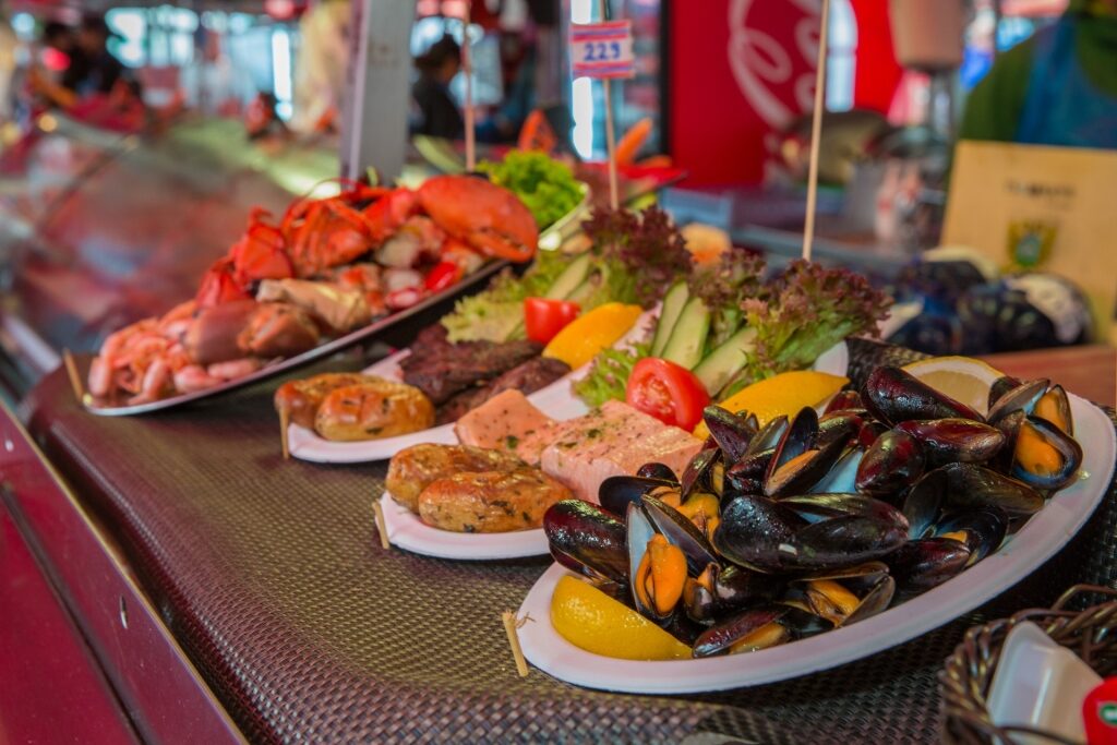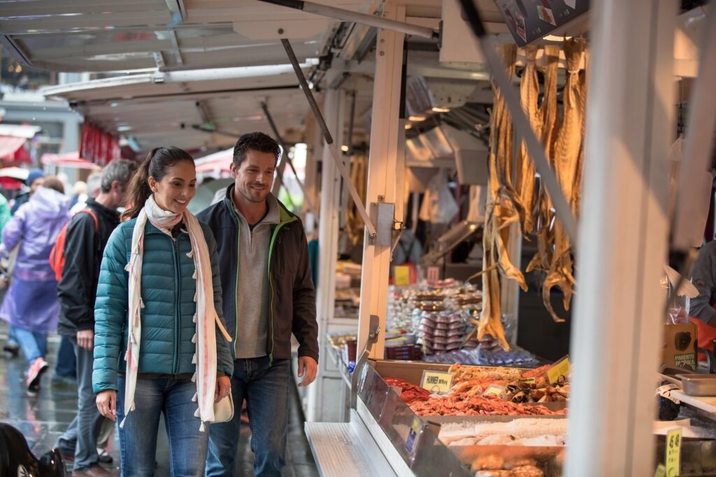 Neben einer Fülle an Meeresfrüchten – Lachs, Hummer, Garnelen und Kaviar – verkauft der Bergen Fish Market frisches Obst und Gemüse und verfügt über eine Reihe von Restaurants. Der Bergener Fischmarkt ist das ganze Jahr über geöffnet. Von Mai bis Sommer gibt es auch draußen Stände mit Sitzgelegenheiten im Freien mit Blick auf den malerischen Hafen.