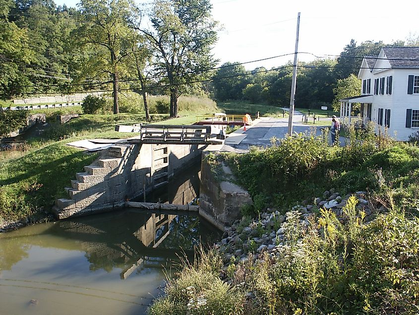 Restaurierte Ohio- und Erie-Kanalschleuse im Canal Exploration Center. Von Oydman in der englischen Wikipedia, CC BY-SA 3.0,Wikipedia.