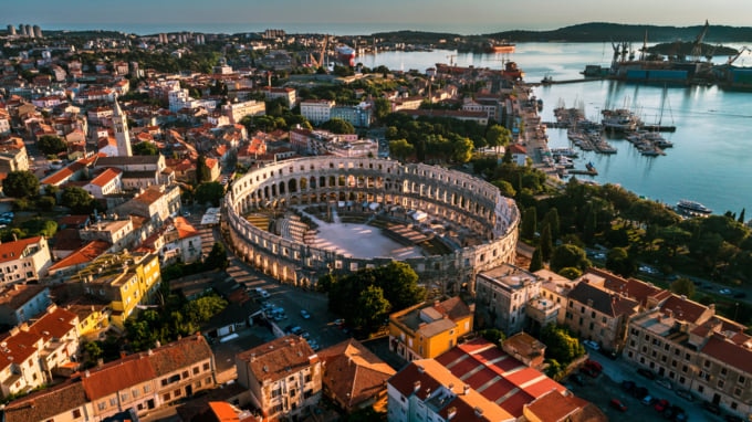 Obwohl das römische Amphitheater in Pula nicht ganz so groß wie das berühmte Kolosseum in Rom ist, ist er gleichermaßen beeindruckend wie einer der besten der größeren Arenen, wobei der größte Teil seiner ursprünglichen Struktur intakt ist. In 68 N.
