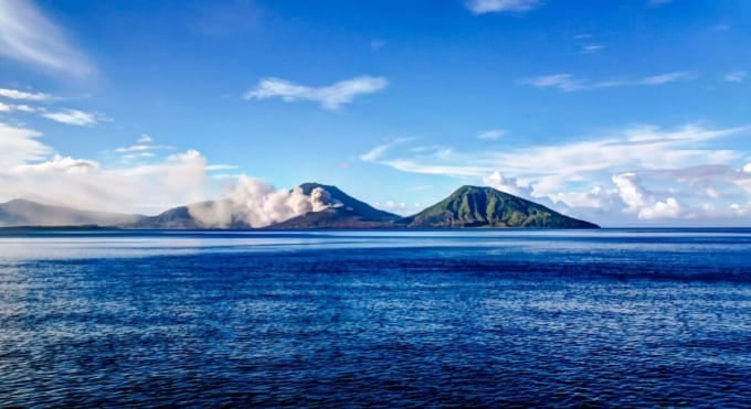 Der Mount Tavurvur auf der Insel New Britain ist als aktiver Vulkan bekannt. Um eine schnelle Erholung von Vulkanausbrüchen zu ermöglichen, veranstaltet die Insel jedes Jahr im Juli ein Maskenfest.
