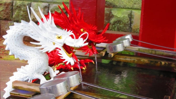 Ganz in der Nähe des Kinomiya-Schreins finden Sie den „Yumae-Schrein“, der die Gottheit der heißen Quellen ehrt. Hier können Sie auch das „Ooyu“ erleben, die Quelle der berühmten heißen Quellen von Atami.