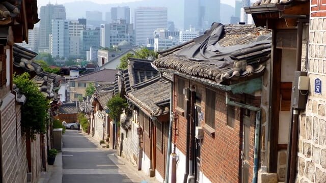 Das Hanok-Dorf Bukchon ist eine Gegend, in der traditionelle koreanische Häuser namens „Hanok“ aus der Joseon-Dynastie (1392–1910) dicht gedrängt sind. Obwohl es sich derzeit um ein Wohngebiet handelt, ist es nicht nur bei Touristen, sondern auch bei Einheimischen beliebt, da es die Atmosphäre der Zeit bewahrt, als dort einst Adlige lebten. Es ist auch als Drehort bekannt und wurde in Dramen wie „Winter Sonata“ und „Playful Kiss“ gezeigt.