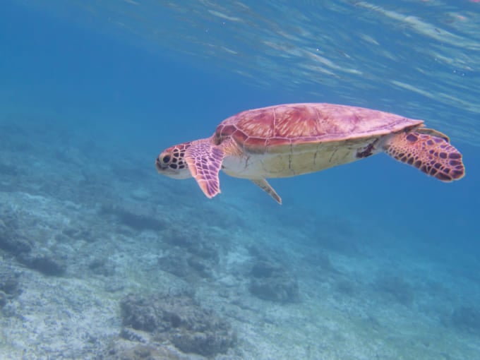 Wenn Sie am Nishi Beach schnorcheln, können Sie auf Meeresschildkröten und eine Vielzahl von Fischen stoßen.