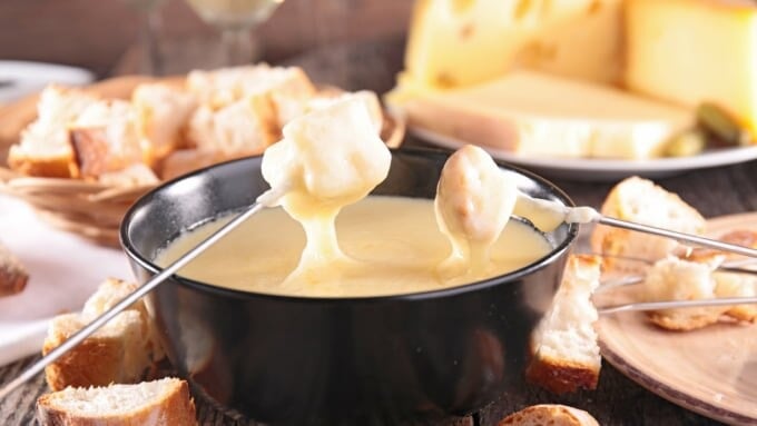 Genießen Sie das berühmte Käsefondue und Weißbrot in Heidi’s Village