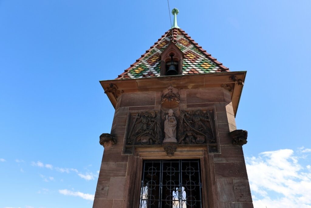 Das Rathaus aus dem 16. Jahrhundert besteht aus den gleichen Baumaterialien wie das Basler Münster und ist ein extravagantes Bauwerk aus Buntsandstein aus der Trias, dem roten Sandstein. Und die Auffälligkeit hört hier nicht auf. Inmitten der mit Gold gesäumten Arkaden im Inneren finden Sie die Geschichte der Stadt, dargestellt durch üppige Fresken, Gemälde und faszinierende Symbole.