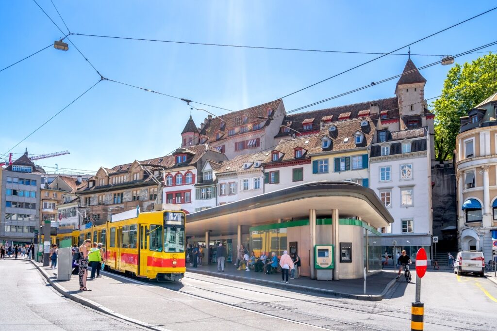 Die Basler Altstadt lässt sich am besten zu Fuß erkunden. Die engen mittelalterlichen Gassen waren eher für Fußgänger als für Autos konzipiert. Für längere Strecken oder müde Beine gibt es die Möglichkeit, E-Bikes zu mieten, oder das Straßenbahnnetz ist ausgezeichnet – schweizerisch zuverlässig, sauber und leicht zu navigieren. Die meisten zentralen Routen laufen in der Nähe des Marktplatzes zusammen.