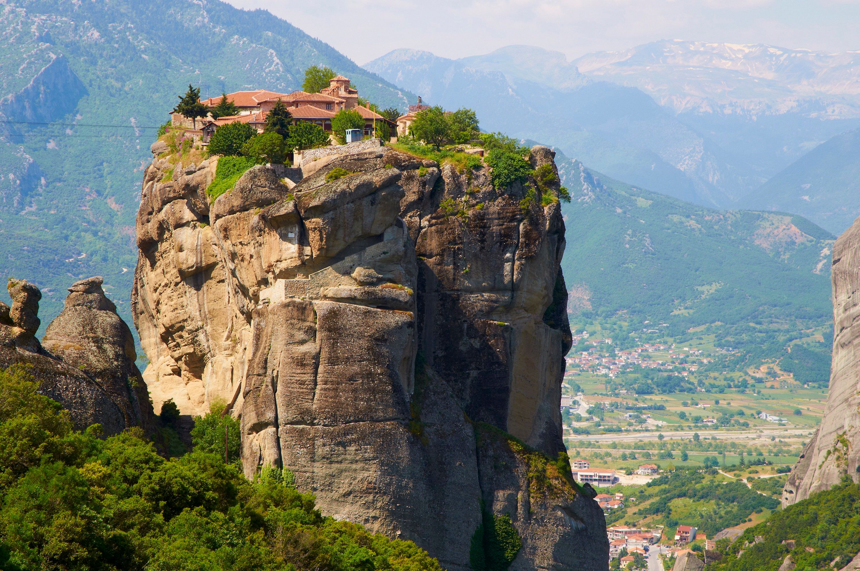 Die Kombination aus natürlichen Felssäulen und Klöstern, die jeder Logik trotzen, präsentiert eine jenseitige,harmonische Mischung aus Natur und Architektur, mitPanoramablick auf die Thessalische Ebene und die umliegenden Berge tragen zur Magie bei.