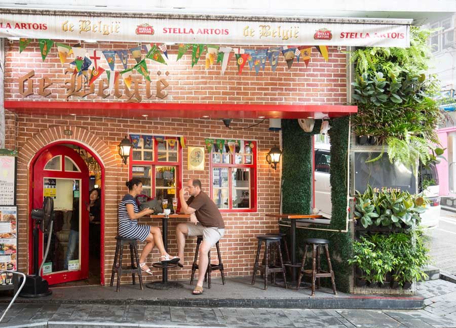 Lan Kwai Fong ist das Herz der Club- und Barszene Hongkongs. In dieser trendigen Gegend gibt es viele originelle, thematisch gestaltete Bars, stilvolle Restaurants mit Sitzgelegenheiten im Freien und Live-Bands, die in voller Lautstärke spielen.