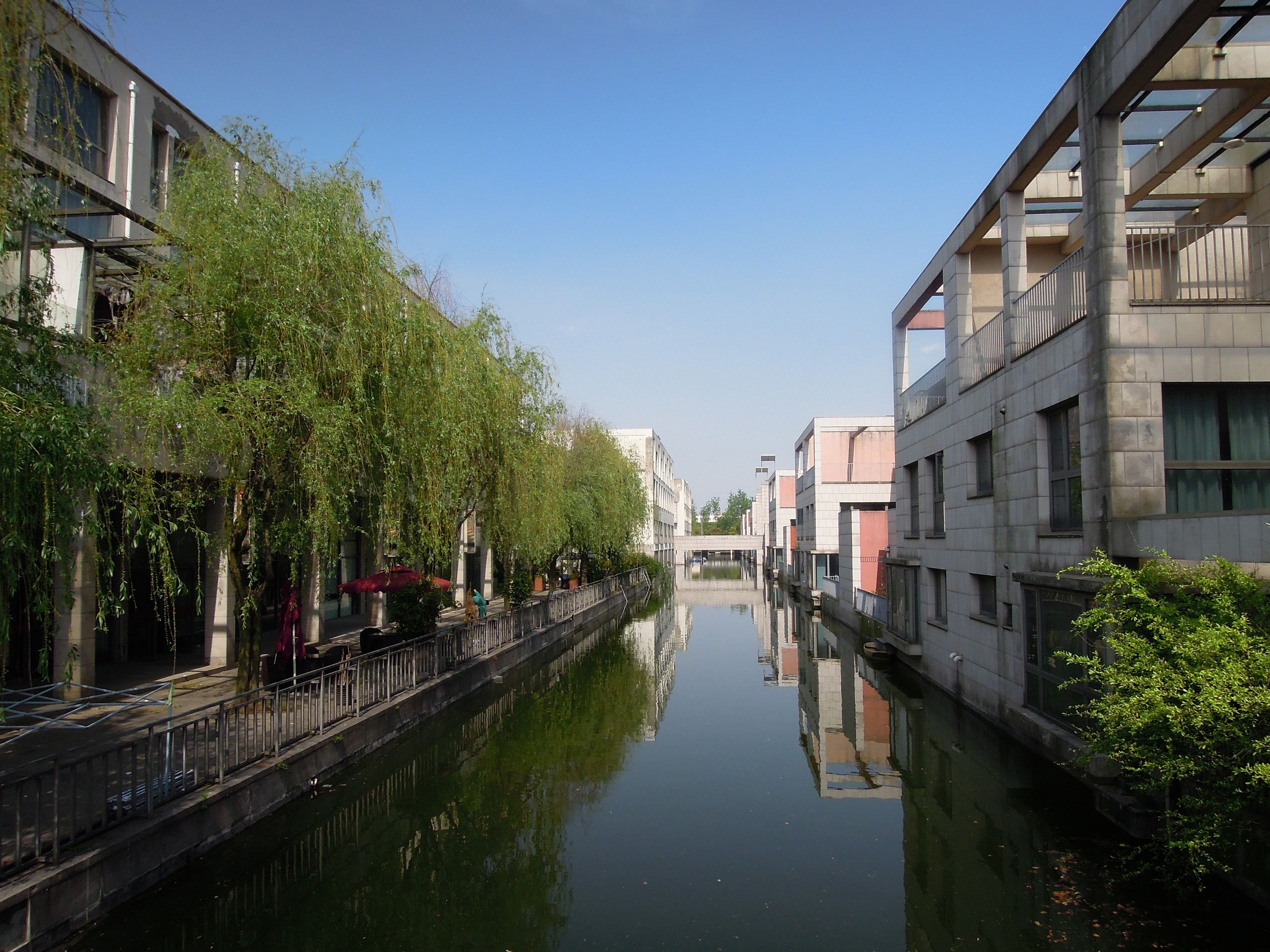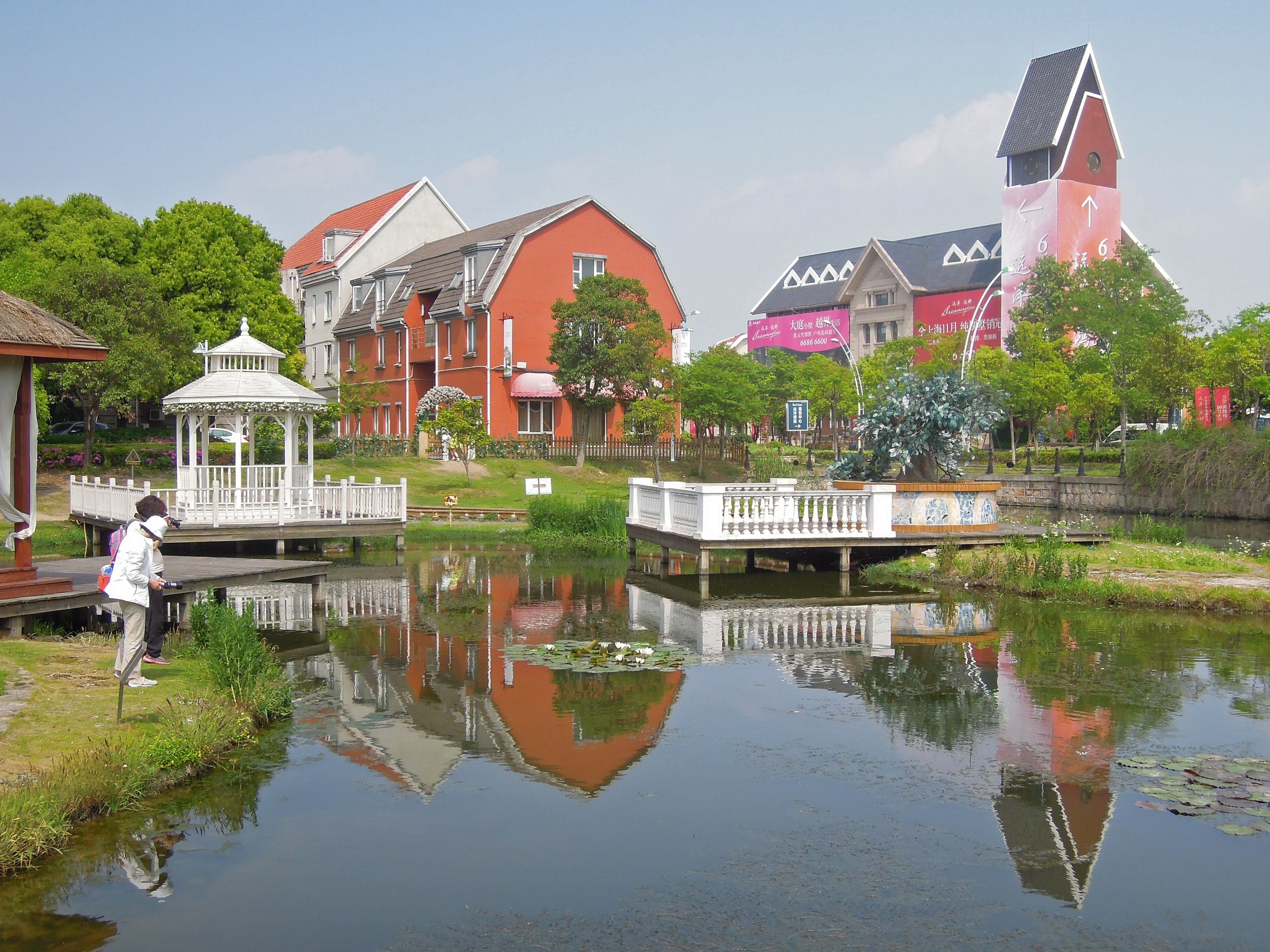Das Ergebnis ist eine moderne Mischung aus italienischem Design und einem Vorort von Shanghai mit breiten Straßen und langen Kanälen, die sowohl bei Anglern als auch bei Kanufahrern beliebt sind.