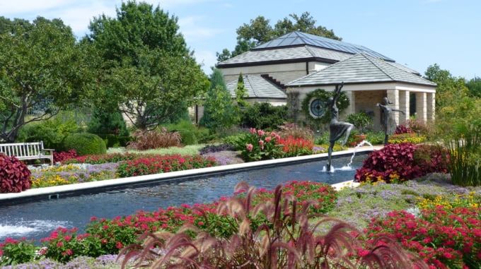 Im Kauffman Memorial Garden in Kansas City trifft Schönheit auf Geschichte. Der Garten ist einer der schönsten und üppigsten Gärten voller leuchtender Blumen, die der Stadt einen Hauch von Farbe verleihen. Der Hauptzweck des Gartens ist ein Zufluchtsort für Stadtbewohner, die sich von ihrem geschäftigen Lebensstil erholen möchten und gleichzeitig Ewing und Muriel Kauffman ihre Ehre erweisen möchten.