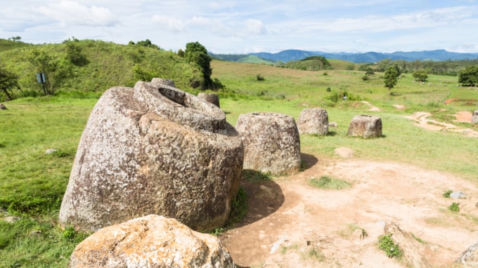 Die Ebene der Tonkrüge in Laos ist ein großes archäologisches Gebiet, das rund um die Stadt Phonsavan entdeckt wurde und in dem riesige Steinkrüge unbekannter Herkunft überall in der Landschaft verstreut sind. Die riesigen Steinkrüge erscheinen in Gruppen unterschiedlicher Höhe und Durchmesser und sind alle aus dem Fels gehauen. Hier durchgeführte Untersuchungen haben gezeigt, dass die Steingefäße mit prähistorischen Bestattungspraktiken in Laos in Verbindung stehen. Diese faszinierende Stätte ist eines der unglaublichsten Geheimnisse der Antike und ein Muss, wenn Sie das Land bereisen.
