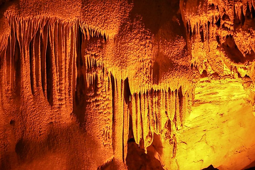 Diese Ablagerungen ragen vom Boden und der Decke hervor und nehmen Gestalt an, wenn Wasser den Kalkstein erodiert und dabei Kalziumkarbonat wieder ablagert. Wenn hängende Stalaktiten mit aus dem Boden herausragenden Stalagmiten verschmelzen, können sie auch eine Säule bilden. Diese atemberaubenden Formationen können auf Ausflügen zur Mammoth Cave, wie der zuvor erwähnten Frozen Niagara-Tour, zusammen mit der Wondering Woods-Höhlentour und der Domes and Dripstones-Tour, besichtigt werden.