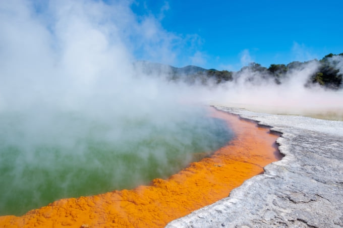 Eine atemberaubende Touristenattraktion, 27 Kilometer von Rotorua entfernt und bekannt als „Wai-O-Tapu Thermal Wonderland“. Es ist ein Ort, an dem man erstaunliche und wunderschöne Ausbrüche aktiver Geothermie beobachten kann. Es ist ein Gebiet, in dem man heiße Quellen genießen kann, die für ihre bemerkenswerten Farben und kochenden Schlammbecken bekannt sind. Dieses Gebiet hat eine lange Geschichte mit Besuchen vieler Touristen, die das Gebiet über die geschützten malerischen Ausblicke erreichen. Der Park rund um dieses Gebiet ermöglicht es einem, das Gebiet zu erkunden und die natürlichen magischen heißen Quellen zu sehen, die sich möglicherweise darin befinden Genießen Sie einen Spaziergang auf der Primrose-Terrasse und am Champagne-Pool, während Sie mehr über die Geschichte des Stammes der Ngati Whaoa erfahren, der in diese Gegend kam.