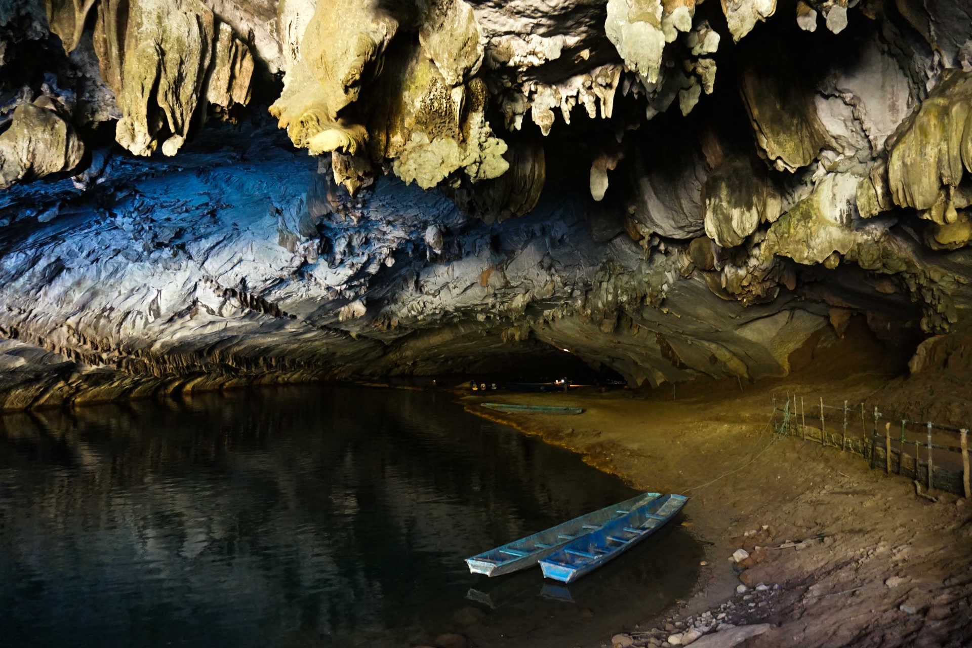 Vom Höhleneingang aus können Sie ein Boot besteigen, um dramatische Stalaktiten entlang des unterirdischen Flusses zu sehen.