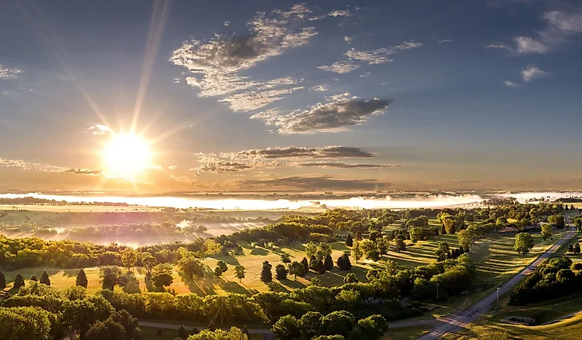 Vermillion liegt in der südöstlichen Ecke des Bundesstaates und ist eine lebhafte, aber entspannte Universitätsstadt mit Blick auf den Missouri River. Die legendären Entdecker Lewis und Clark reisten im 19. Jahrhundert durch dieses Gebiet. Wandeln Sie auf ihren Spuren im Spirit Mound Historic Prairie, einem natürlichen Graslandschutzgebiet, das 1804 von Lewis und Clark besucht wurde. Der Park ist das ganze Jahr über geöffnet und der perfekte Ort, um einen Tag lang zu wandern, Vögel zu beobachten oder ein gemütliches Picknick zu genießen.