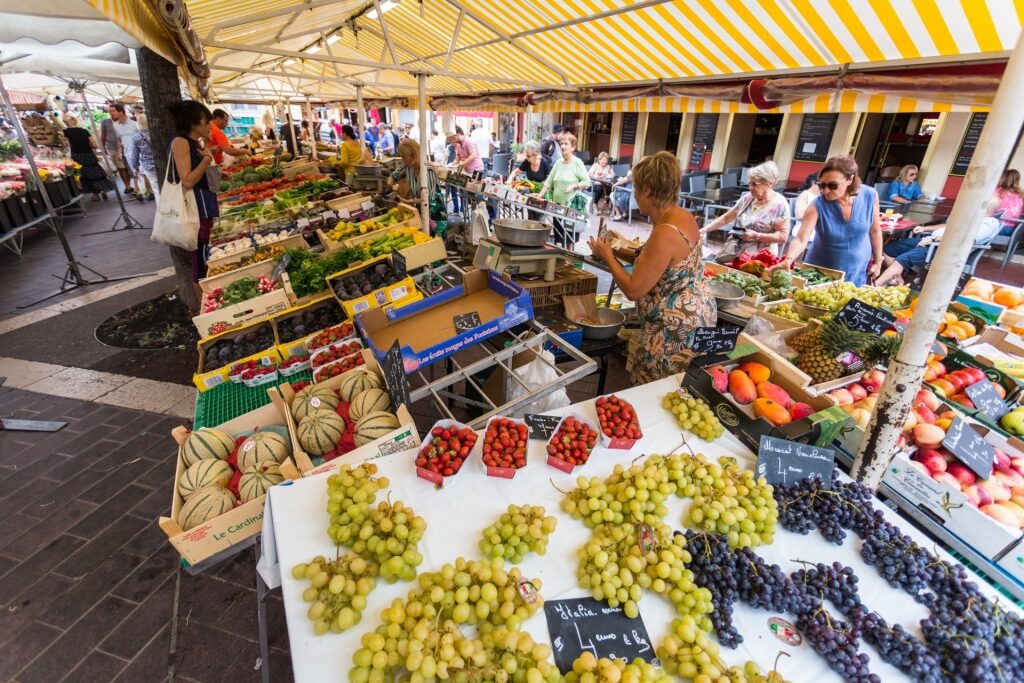 Um in die französische Esskultur einzutauchen, ist der Cours Saleya Market der perfekte Ausgangspunkt. Diese wundervolle Auswahl an Ständen im Schatten gestreifter Markisen wird von zitronengelben Wohnblöcken sowie dem Opernhaus aus dem 19. Jahrhundert begrenzt. Knabbern Sie einheimischen Ziegenkäse, fleischige Oliven und alles, was Ihnen sonst noch schmeckt. Montags werden die Lebensmittel und Blumen auf einem Flohmarkt getauscht.
