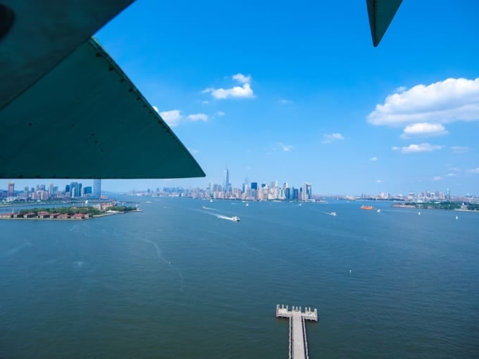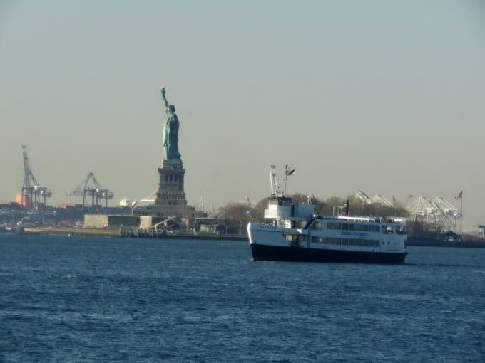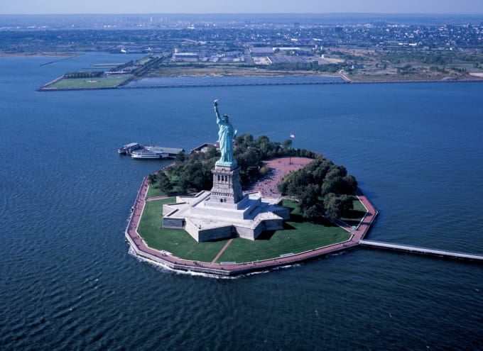 Liberty Island befindet sich im New Yorker Hafen zwischen Manhattan und New Jersey, sodass Fähren von beiden abreisen.