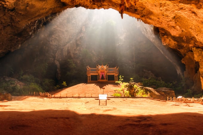 Mit einer Fülle von Nationalparks in Thailand sollte ein Besuch mindestens eines dieser Wildnisparadies hoch auf Ihrer Liste stehen. Einer unserer Favoriten der Parks ist Sam Roi Yot, etwa eine Stunde von der beliebten Küstenstadt Hua Hin entfernt. Sein Name bedeutet "den Berg mit dreihundert Gipfel", die sich auf die atemberaubenden Kalksteinhügel beziehen, die entlang der Küste in den Himmel reichen. Der Park bietet nicht nur atemberaubende Berg- und Küstenlandschaften, sondern ist auch außergewöhnlich reich an Wildtieren, in denen eine große Vielfalt von Vögeln, Säugetieren und sogar Delfinen beheimatet ist, die die Küste besuchen. Der berühmteste Ort im Park ist die Phraya Nakhon -Höhle und sein königlicher Pavillon, das im späten 19. Jahrhundert für König Rama V erbaut wurde. Eine Eröffnung im Dach der Höhle leuchtet Sonnenlicht auf den Pavillon und erzeugt eine faszinierende malerische Szene, die ihn in den letzten Jahren zu einem beliebten Fototort erzeugt, obwohl es ziemlich schwierig war, zu erreichen.