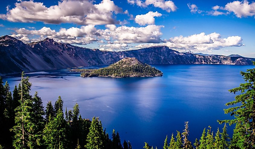 Der Crater Lake in der Cascade Range in Oregon ist ein äußerst beliebtes Touristenziel und eines der einzigartigsten Süßwasserökosysteme des Kontinents. Er entstand durch den Einsturz des Mount Mazama vor etwa 7.700 Jahren und ist mit einer Tiefe von 1.949 Fuß der tiefste See in den Vereinigten Staaten!