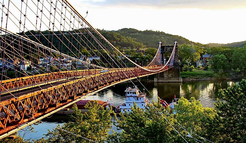 Wheeling ist eine der größeren Städte West Virginias und bietet eine Landschaft, die es wert ist, mehrere Kilometer zu reisen, um sie zu bewundern. Direkt am Ohio River gelegen und von den Ausläufern der Appalachen umgeben, wird diese Stadt bei Reisenden einen großen Eindruck hinterlassen, insbesondere bei denen, die die beste Aussicht genießen, von der man eine von der Wheeling Suspension Bridge aus genießen kann. Diese 1849 über dem Ohio River erbaute Brücke bietet beeindruckende Ausblicke auf die umliegenden üppigen Wälder und die Skyline der Stadt und ist für Spaziergänge geöffnet.