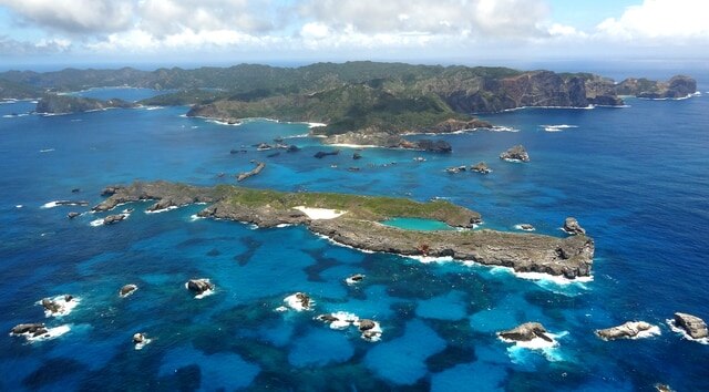 Minamijima ist eine unbewohnte Insel südwestlich von Chichijima. Es zeichnet sich durch seine überschwemmte Karsttopographie aus, die zum nationalen Naturdenkmal erklärt wurde, und insbesondere der Ogiike-Teich ist ein atemberaubend schöner, jenseitiger Anblick.