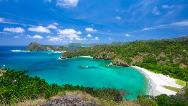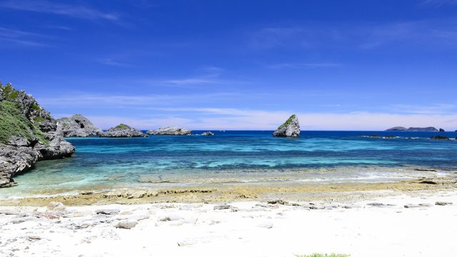 Direkt unten rechts können Sie den Kominato-Strand sehen, mit dem weißen Sand des Kopepe-Strands dahinter. Die Aussicht erinnert an ein tropisches Resort! Auf der linken Seite können Sie Buta Beach und die Inseln Minamijima sehen, mit einem Wanderweg, der bis zum John Beach reicht. Da es nur wenige Besucher gibt, ist dies ein idealer Ort für diejenigen, die die ruhige Schönheit des Meeres in Ruhe genießen möchten.