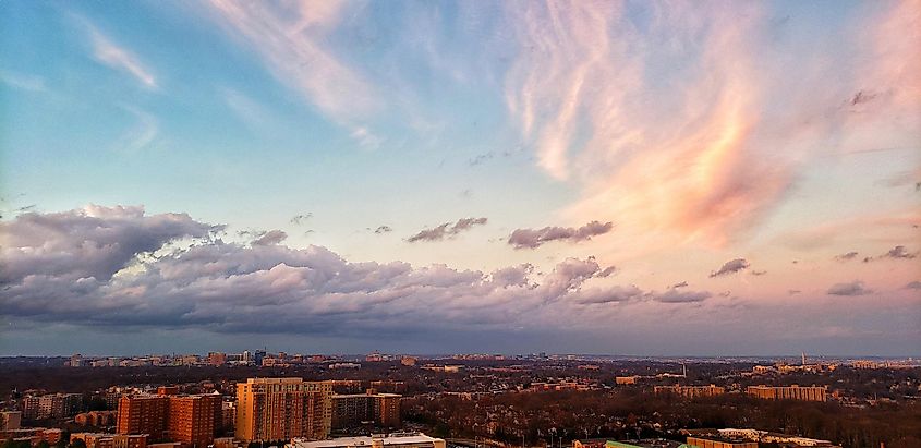 Wunderschöner Sonnenuntergang und Wolken in der Stadt Falls Church, Virginia, Amerika.