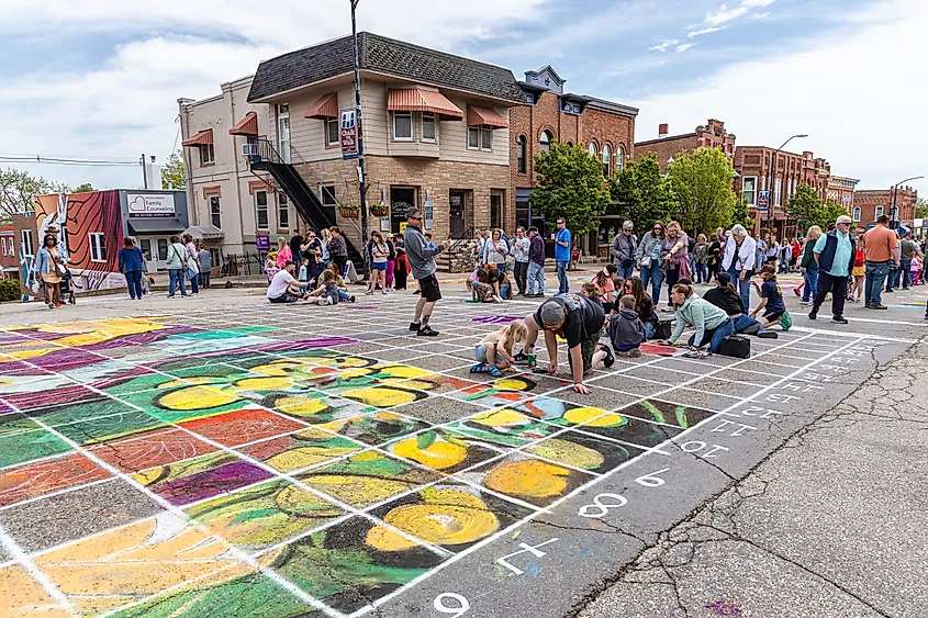 Chalk the Walk-Event in Mount Vernon, Iowa. Bildnachweis: Jessica Connery / Shutterstock.com.