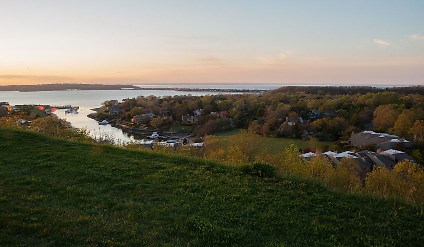 Mit Blick auf Asharoken und Northport Bay in der goldenen Stunde im Herbst