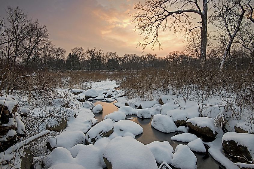 Diese charmante Gemeinde im Lake County liegt am Ufer des Michigansees. Seine reiche natürliche Umgebung macht es zu einer der besten Städte in Illinois für einen Winterurlaub, und mehrere Naturgebiete im Lake Forest sehen nach Schneefall atemberaubend aus. Sie entdecken diese magische Landschaft bei der Lake Forest Open Lands Association. Das Gelände erstreckt sich über eine Fläche von mindestens 800 Hektar und es gibt 12 Meilen an Wanderwegen, die Sie mit Ihren Schneeschuhen erkunden können.