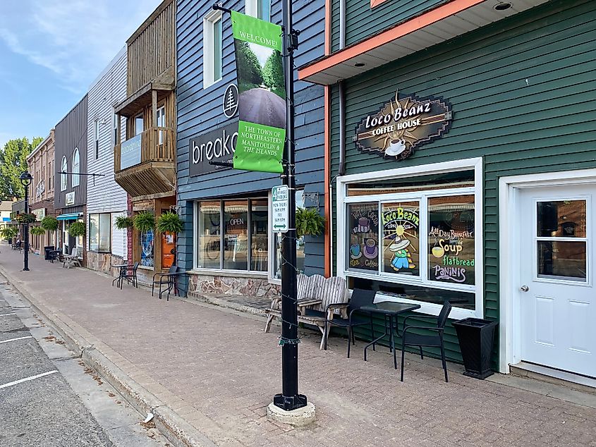 Wenn Sie auf der Insel sind, machen Sie sich auf den Weg nach Little Current – ironischerweise die größte Gemeinde Manitoulins. In dieser Transitstadt kommen Menschen über die Heritage Swing Bridge (d. h. einen Bahnübergang aus dem Jahr 1913), die den Nordkanal überspannt und mit Nord-Ontario verbindet, auf die Insel und von dort weg. Außerdem legen sie an den zahlreichen geschützten Jachthäfen an. Die treffend benannte Water Street gilt als „Modezentrum“ der Insel Mantoulin, deckt aber auch das typische, für Touristen geeignete Geschäftsspektrum von Cafés/Restaurants/Souvenirs ab. Außerdem gibt es jeden Samstagmorgen überall auf der Straße einen Bauernmarkt, falls Ihr Roadtrip zufällig zusammenfällt. Abgesehen vom Einkaufen bietet Little Current eine malerische Promenade, ein langes Wandgemälde zur lokalen Geschichte und das Manitoulin Information Center (für alle Neuankömmlinge). Gleich die Straße hinauf finden Liebhaber des Kunsthandwerks schließlich die Manioutlin Brewing Company mit ihrer weitläufigen Terrasse, komplett mit einer Bar im Freien und Imbisswagen(s). Letztendlich behält Little Current den entspannten, naturverbundenen Charakter der Insel bei, fügt aber nur ein paar soziale Akzente hinzu, um die Sache aufzupeppen.