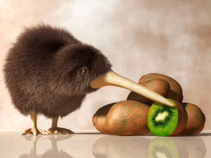 Hier geht es nicht um die Kiwifrucht, sondern um den Kiwivogel! Der nur in Neuseeland beheimatete Kiwi ist der Nationalvogel des Landes. Tatsächlich wurde die Kiwi nach diesem einzigartigen flugunfähigen Vogel benannt.